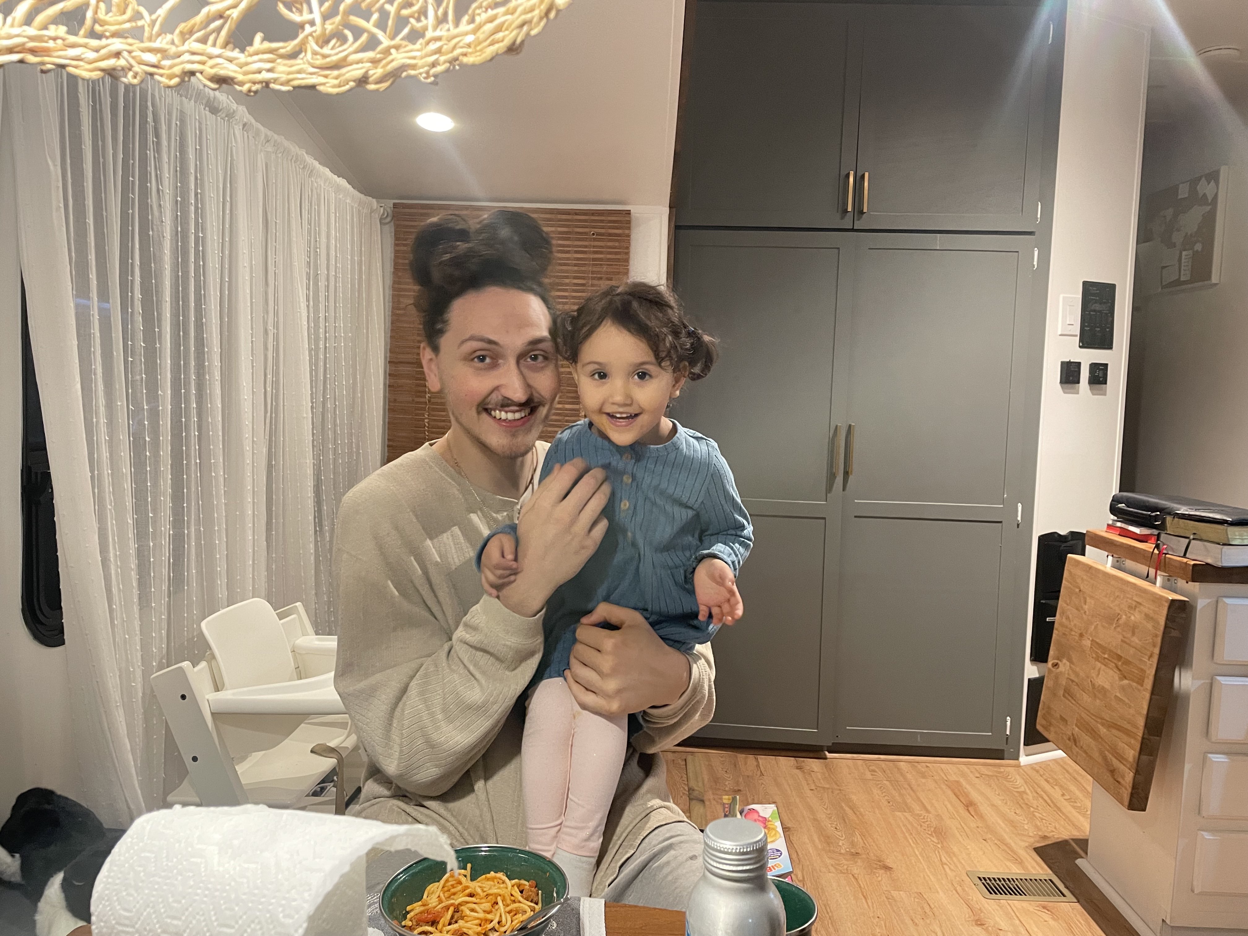 This is a picture of Tim and his daughter when we had dinner in my 5th wheel on the beach.
